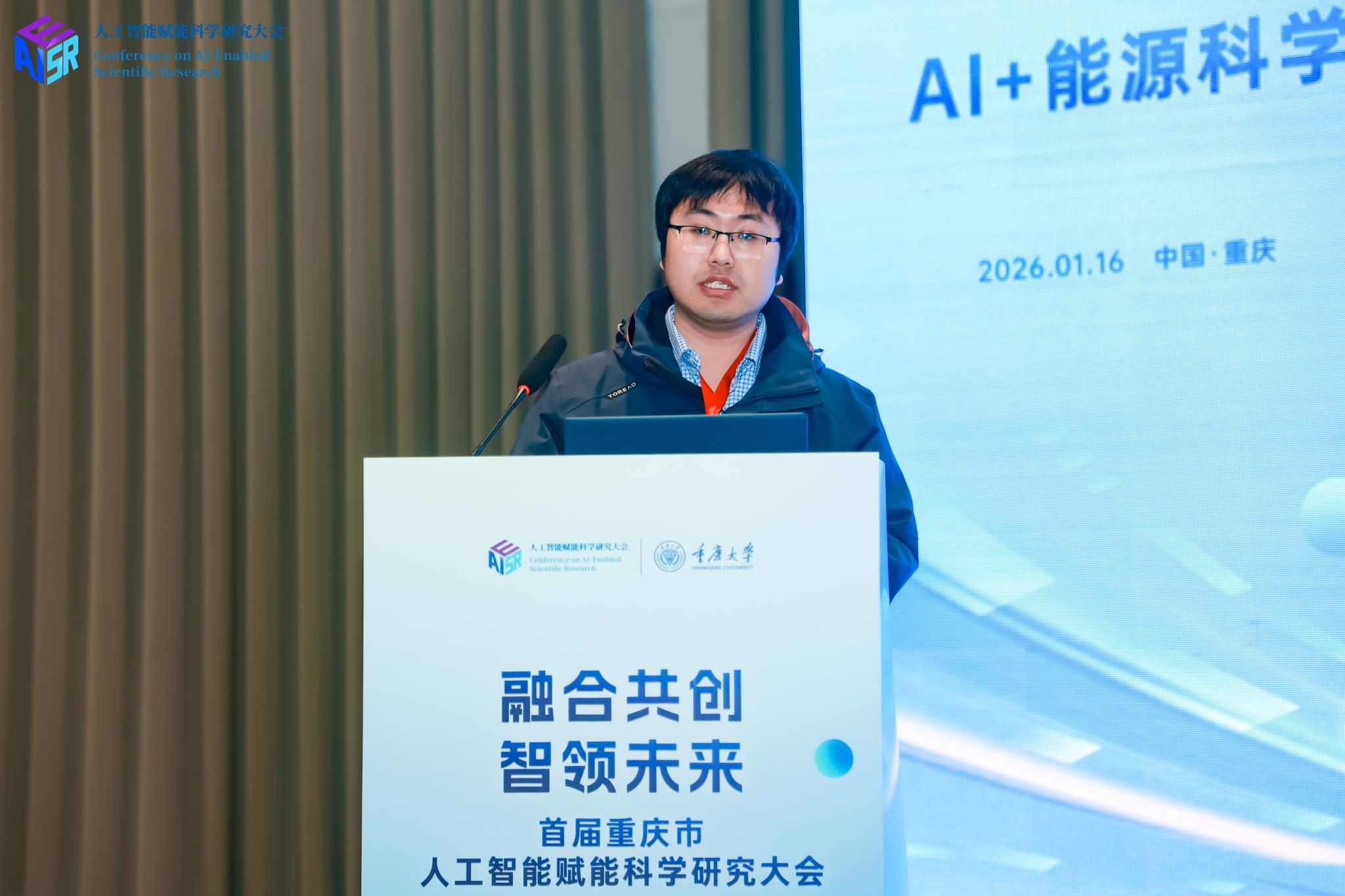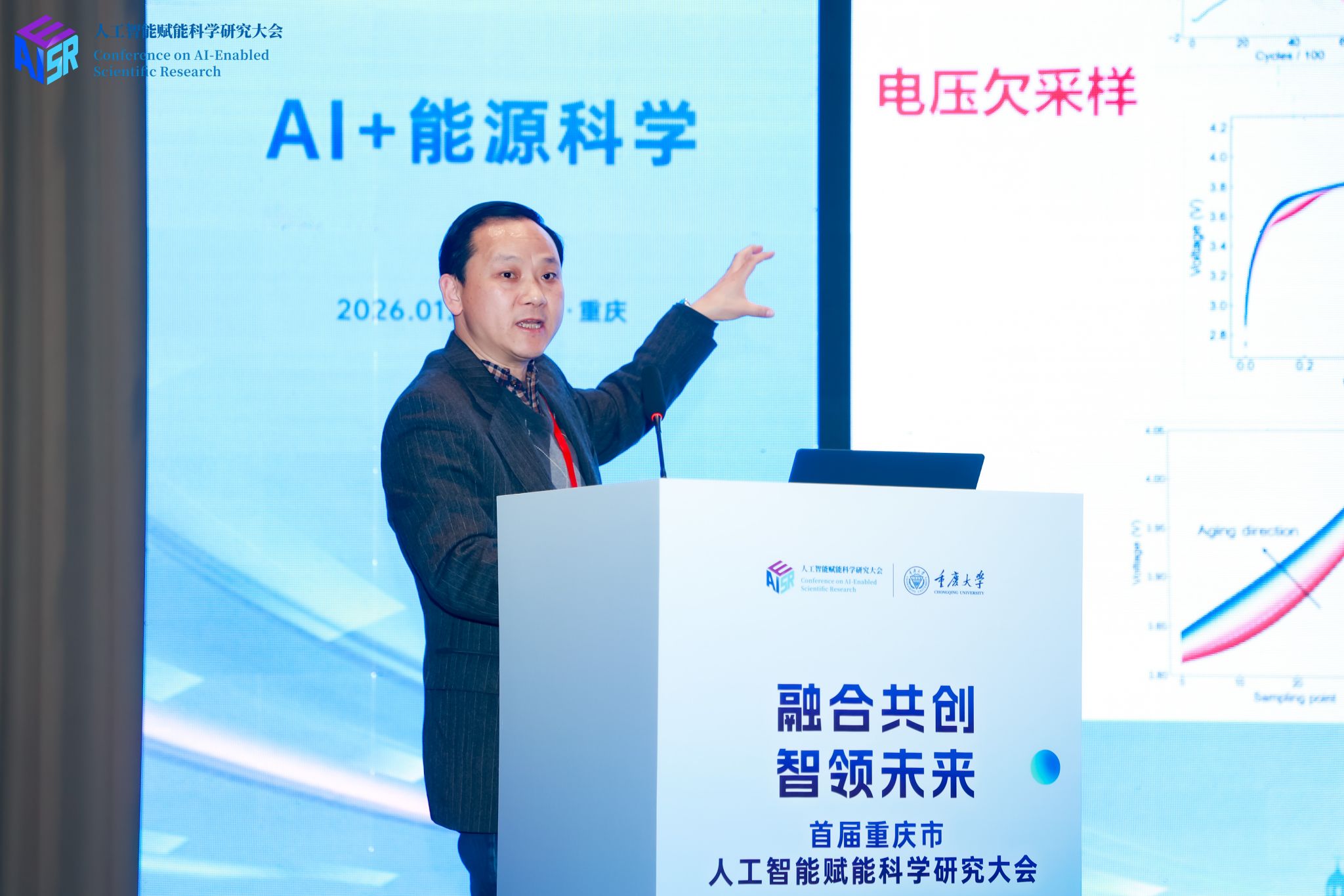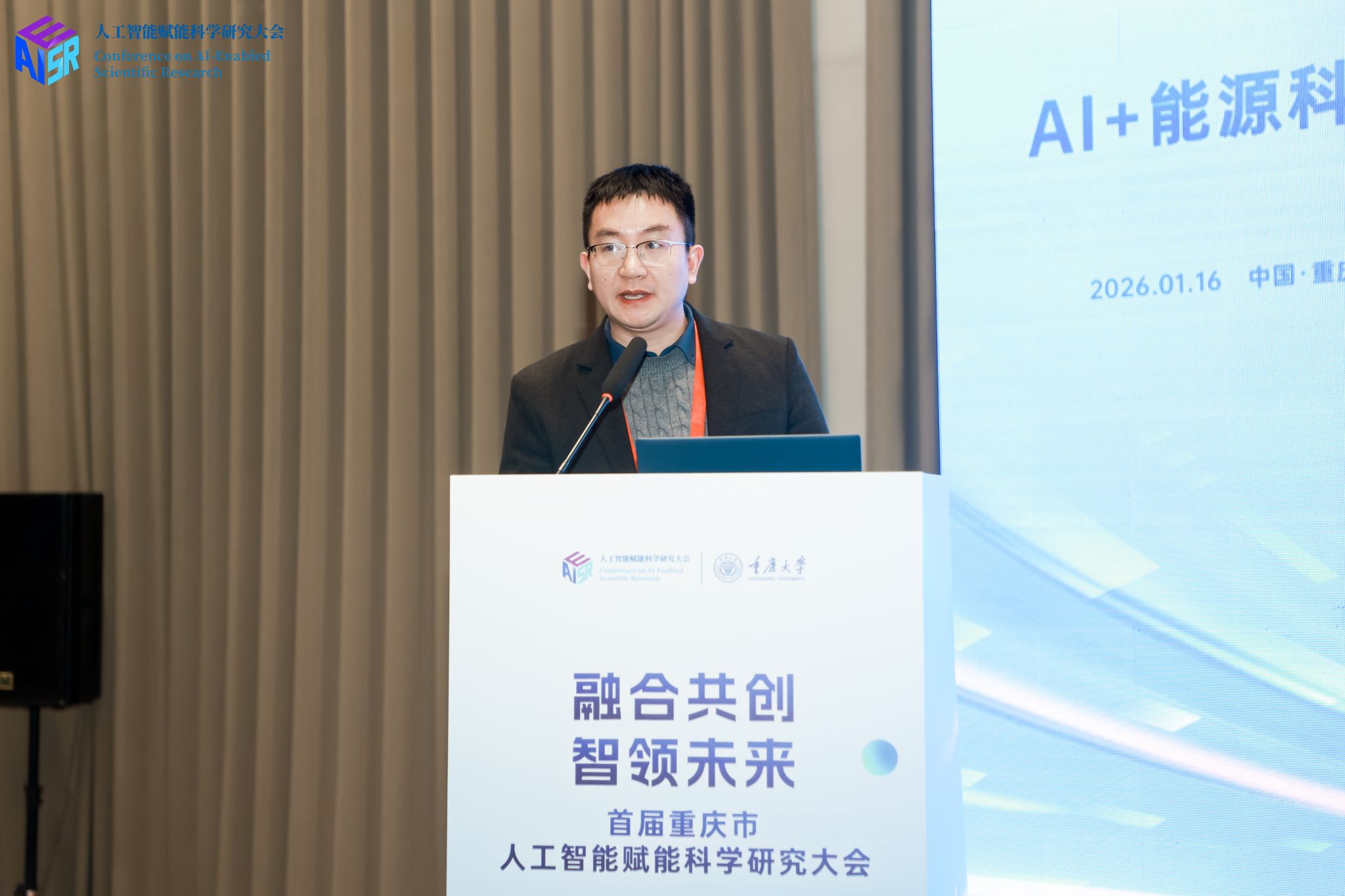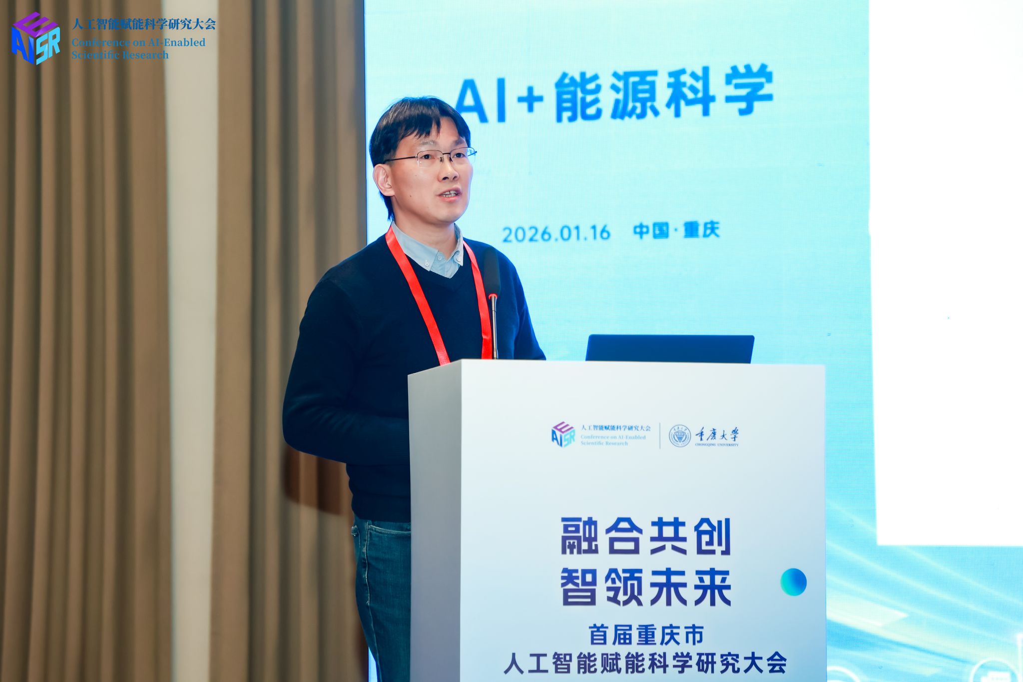 2026年1月16日,首届重庆市人工智能赋能科学研究大会在中国重庆·科学会堂顺利举行。大会汇聚了重庆市领导、多位院士专家及高校、科研机构与企业代表,共同探讨以人工智能驱动科技创新,促进AI与教育、科技、人才工作深度融合,助力重庆建设人工智能应用高地。作为大会七大专题论坛之一,重庆大学国家储能技术产教融合创新平台(以下简称“储能平台”)承办的“AI+能源科学”论坛于16日下午在科学会堂E205A厅举行。该论坛聚焦人工智能技术在能源领域的深度融合与应用创新,积极响应国家“人工智能+”行动部署,旨在探索智能驱动下能源研究的范式变革,为重庆建设人工智能创新高地提供前沿思路与实践方案。
